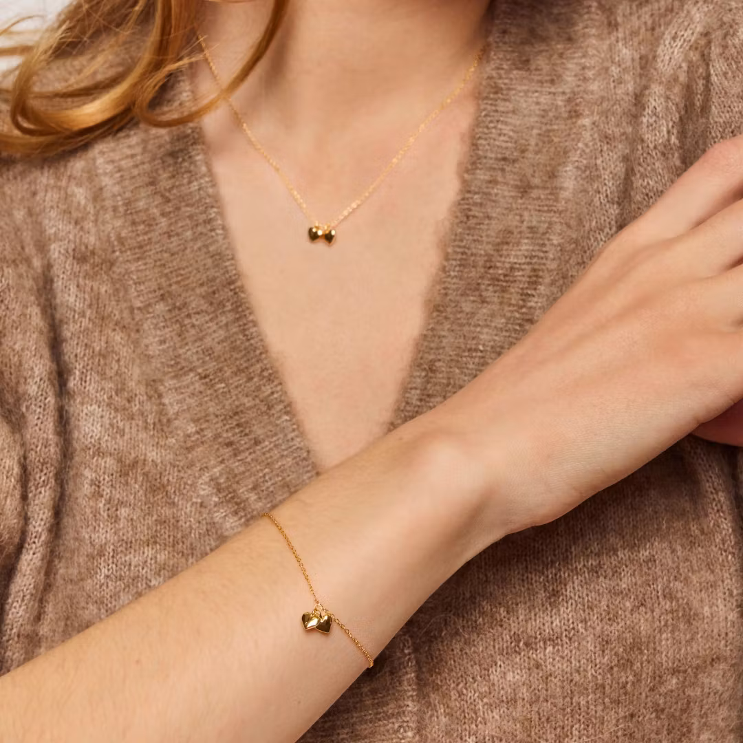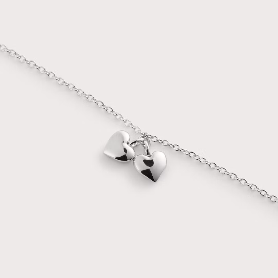 Et armbånd med to små hjerter. Til en du elsker eller som en påmindelse om en der står dig nær.