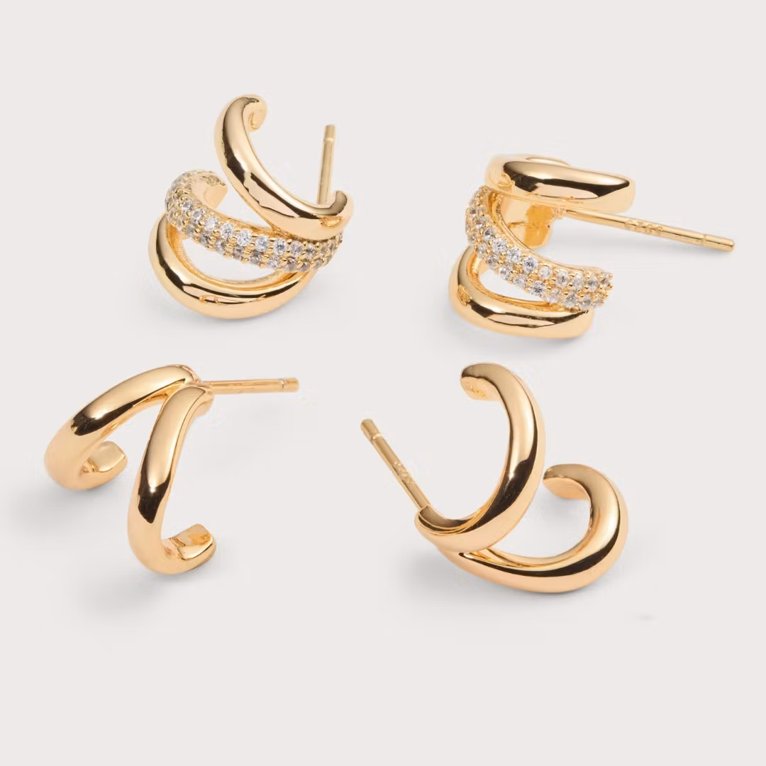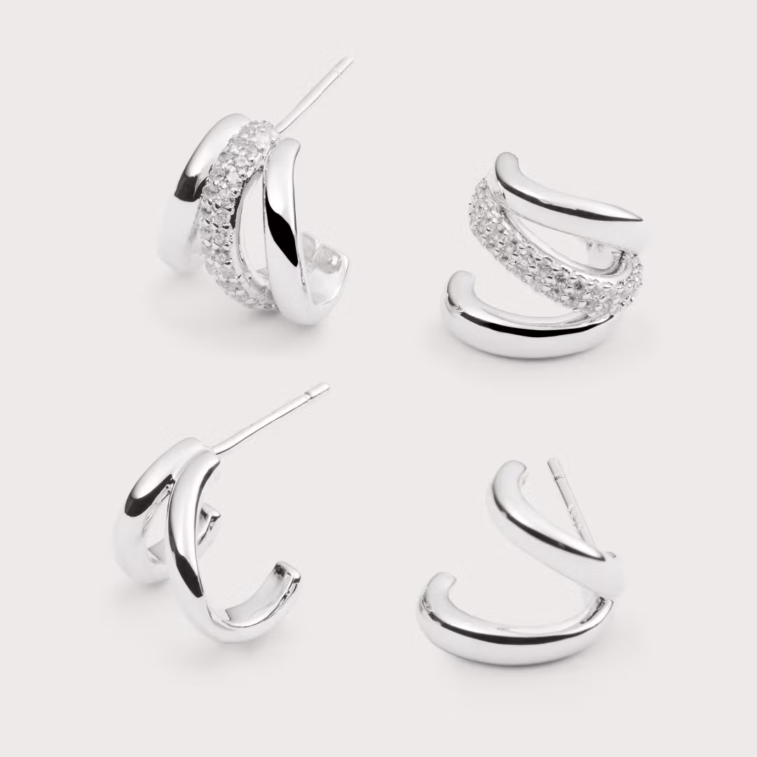 Denne combo indeholder et par Windflow øreringe og et par Flowy øreringe – to favoritter inspireret af havet. Windflow øreringe, formet efter bølgernes bevægelse og som omfavner øreflippen, og Flowy øreringe, blødt bøjet som en bølge, begge designet til at blive dine nye favoritter.