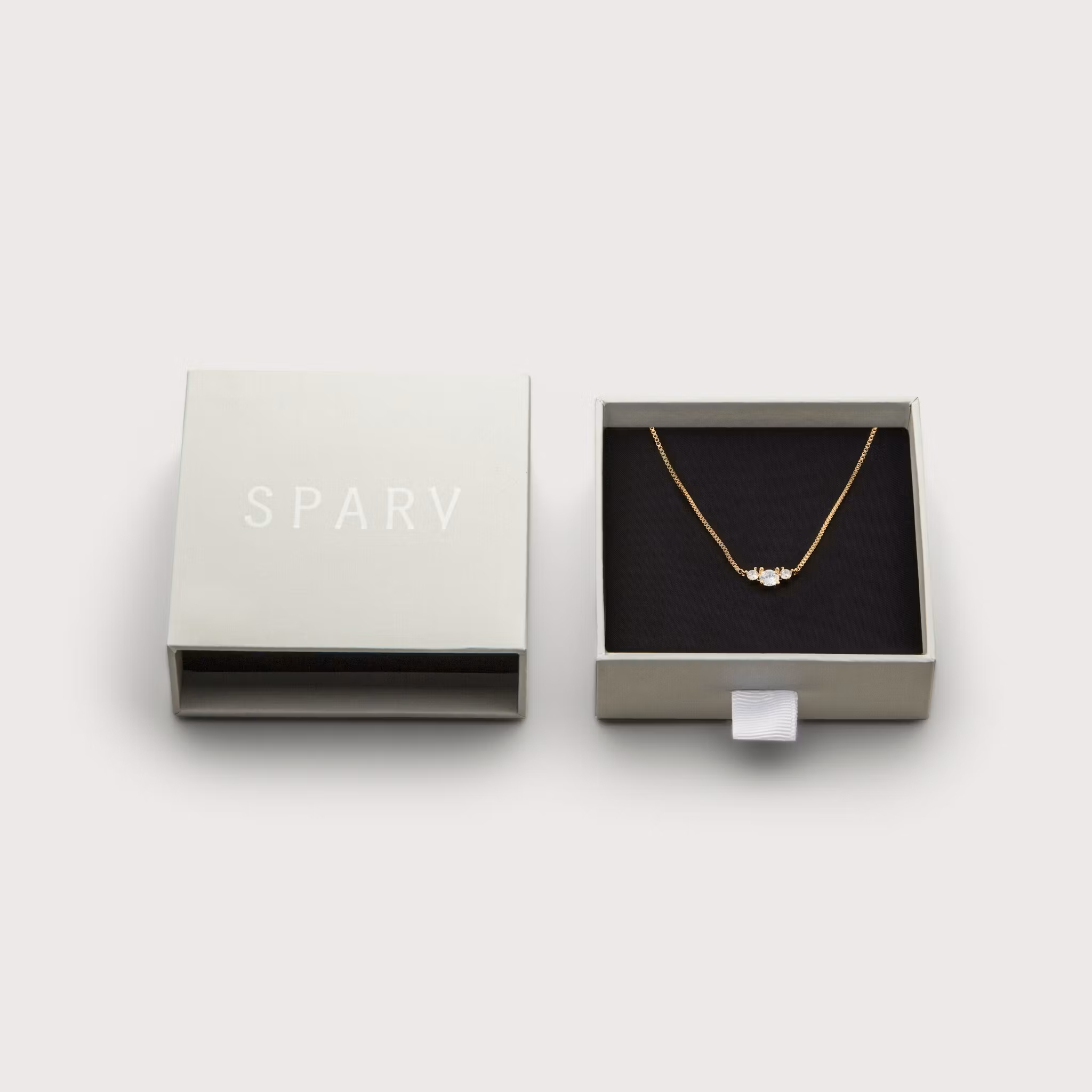 Barely There kommer i to udførelser: forgyldt (18K) og sølvbelagt messing. Alle smykker er nikkelfri, og vores guldbelagte smykker har en ekstra tyk forgyldning af 18K, der er lavet til at holde i lang tid. Omhyggeligt pakket i æsker af genbrugspapir og FSC-mærket papir.