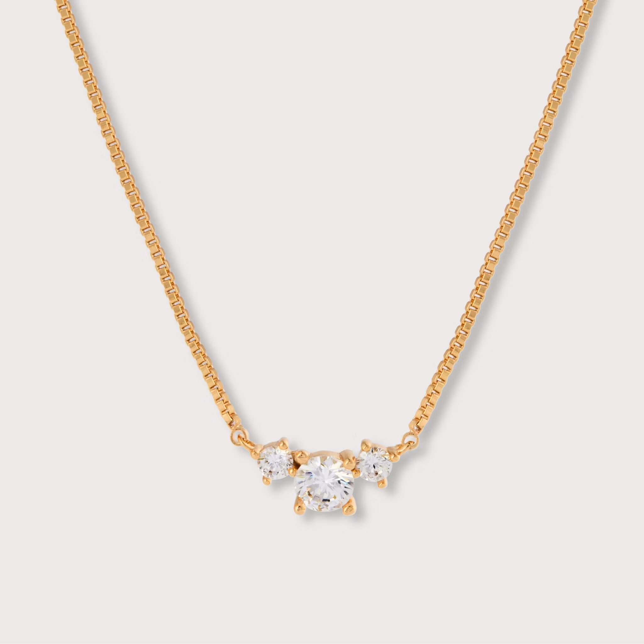 En halskæde med tre håndsatte zirkoner, så minimalistisk at du næsten ikke bemærker, at du har den på.