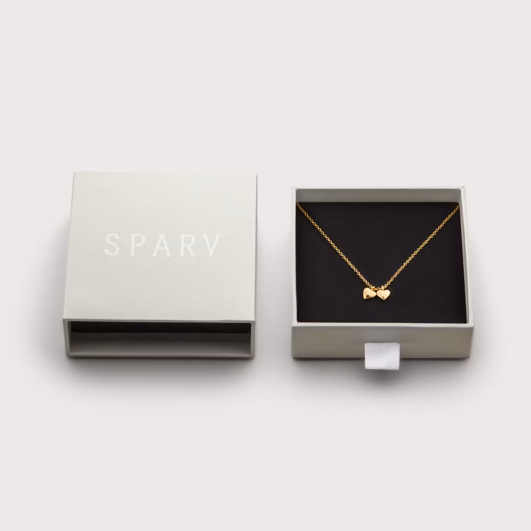 Yours Truly kommer i to udførelser: forgyldt (18K) og sølvbelagt messing. Alle smykker er nikkelfri, og vores guldbelagte smykker har en ekstra tyk forgyldning af 18K, der er lavet til at holde i lang tid. Omhyggeligt pakket i æsker af genbrugspapir og FSC-mærket papir.