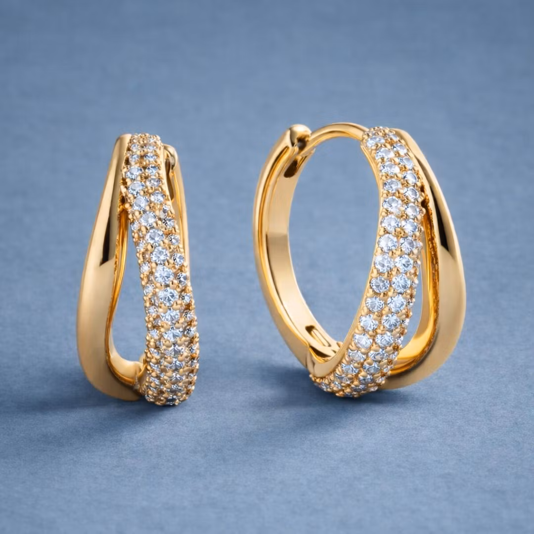 Chunky hoops med dobbelte ringe og håndsatte zirkoner i pavé stil. Klassisk med et twist.