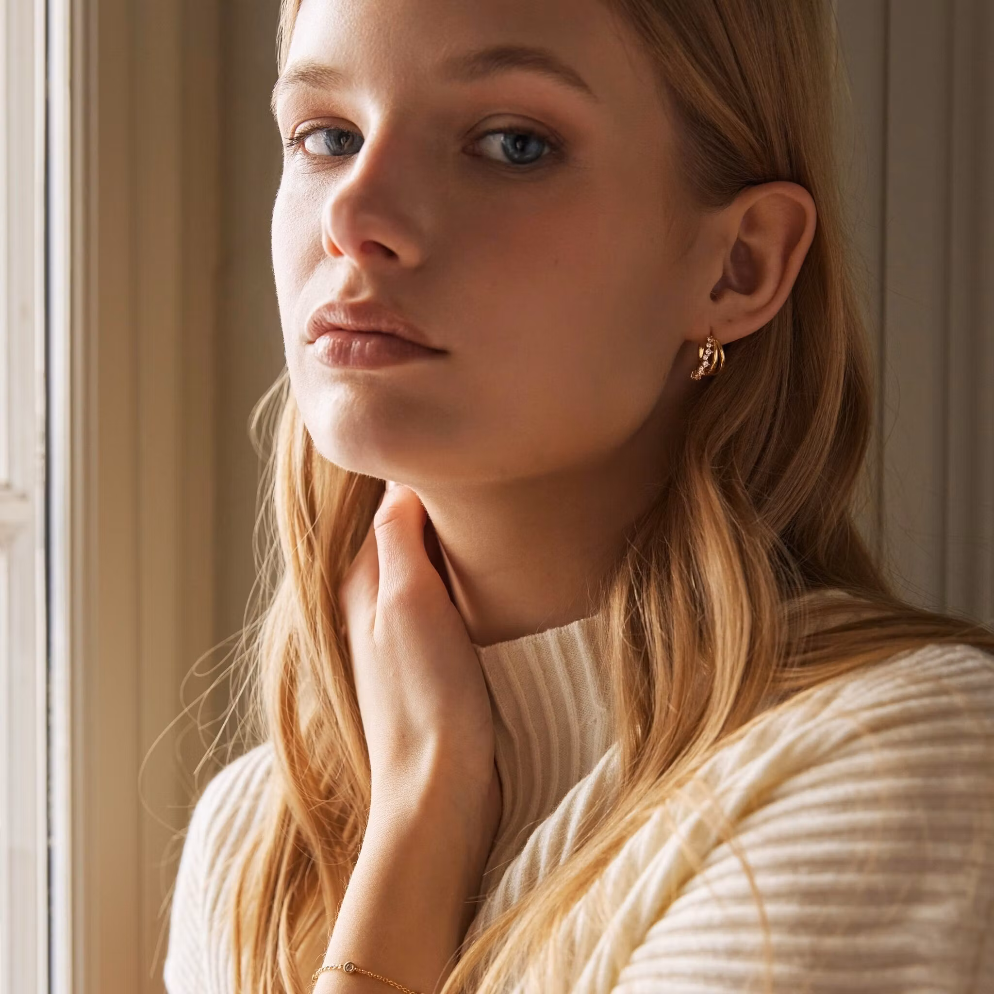 Heavenly Stay sælges i par og kommer i to udførelser: forgyldt (18K) og sølvbelagt messing. Alle smykker er nikkelfri, og vores guldbelagte smykker har en ekstra tyk forgyldning af 18K, der er lavet til at holde i lang tid. Omhyggeligt pakket i æsker af genbrugspapir og FSC-mærket papir.