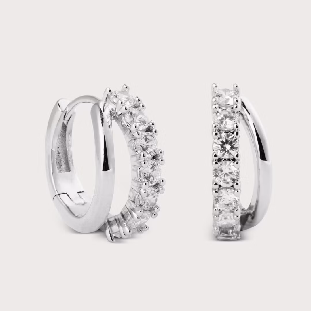 Doble hoops med håndsatte zirkoner. Et par øreringe, der er med dig hele dagen.