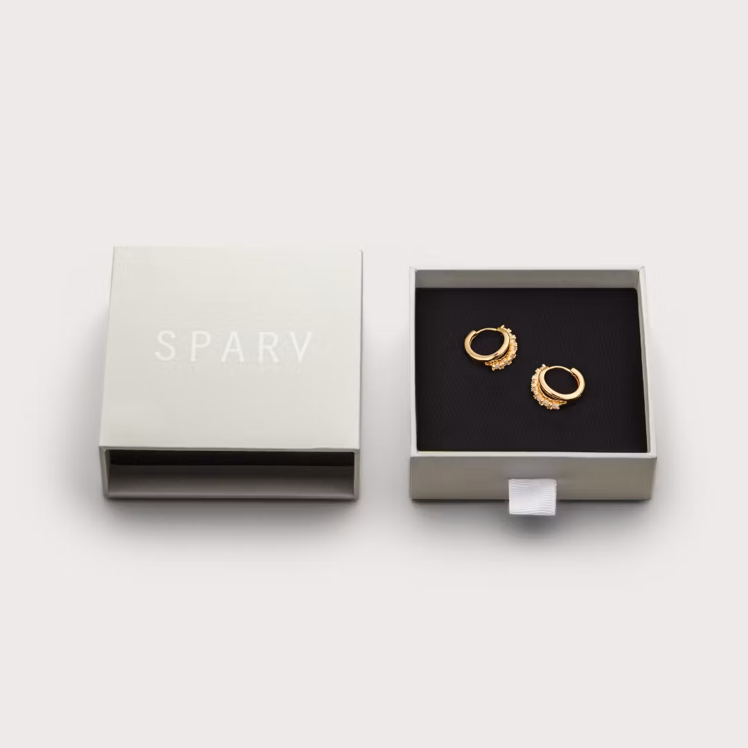 Journey sælges i par og kommer i to udførelser: forgyldt (18K) og sølvbelagt messing. Alle smykker er nikkelfri, og vores guldbelagte smykker har en ekstra tyk forgyldning af 18K, der er lavet til at holde i lang tid. Omhyggeligt pakket i æsker af genbrugspapir og FSC-mærket papir.