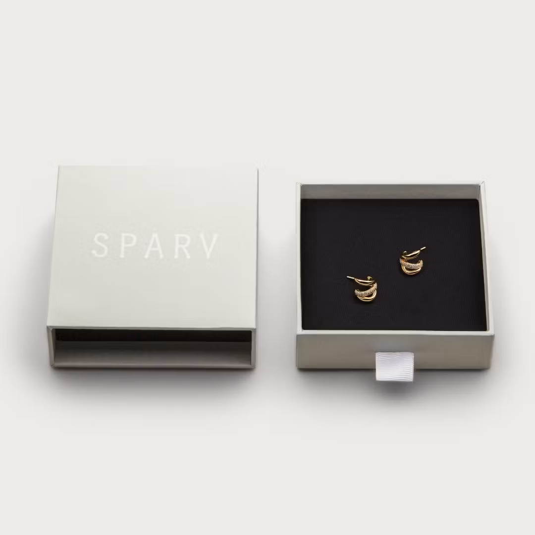 Windflow sælges i par og kommer i to udførelser: forgyldt (18K) og sølvbelagt messing. Alle smykker er nikkelfri, og vores guldbelagte smykker har en ekstra tyk forgyldning af 18K, der er lavet til at holde i lang tid. Omhyggeligt pakket i æsker af genbrugspapir og FSC-mærket papir.