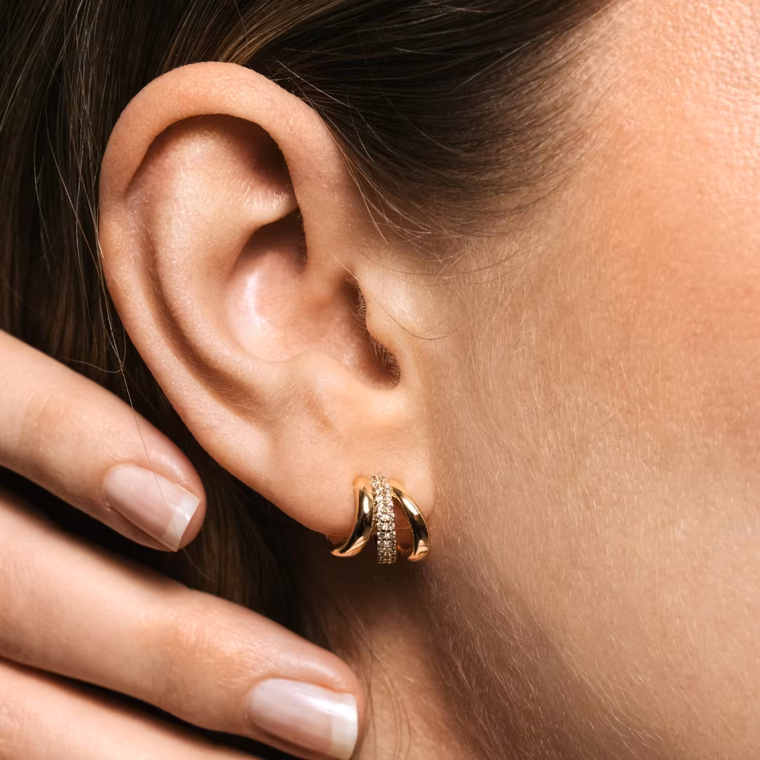 Øreringe inspireret af bølger, der omfavner øreflippen perfekt. Opdag vores nye favorit-hoops, Windflow.